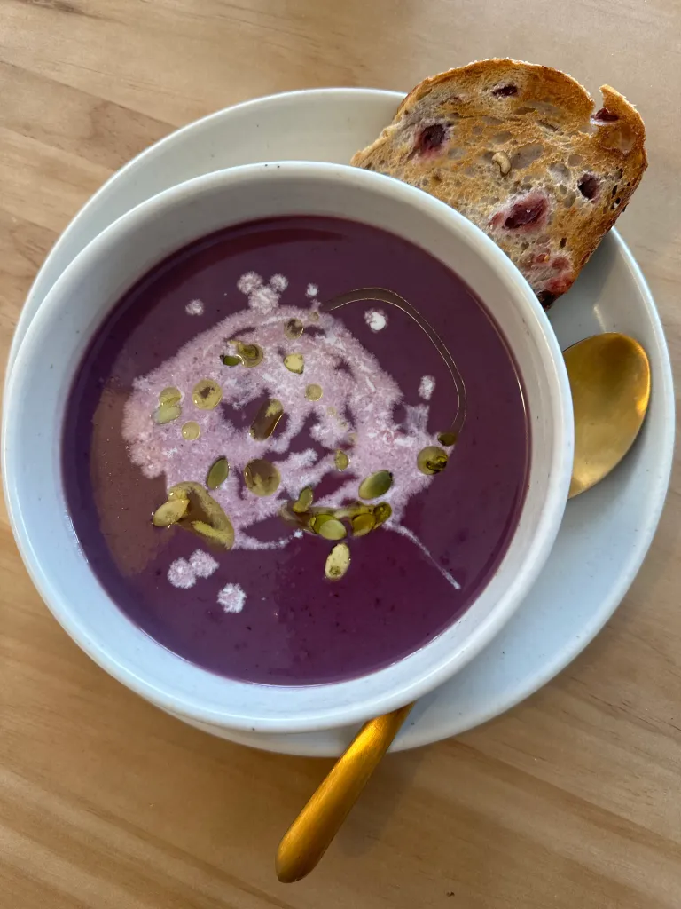 5. Serve in bowl drizzled with olive oil, milk/cream and sprinkled with pumpkin seeds. I served with a slice of toasted sourdough. Enjoy!