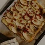 4. In 9×13 baking dish, add a small ladle of sauce just to lightly coat the bottom of the pan. About 1/4-1/3 cup. Spread around evenly.