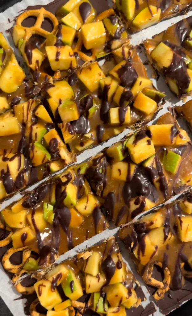 - Mix apples with caramel in bowl – make sure to dry apples off before and remove any excess liquid.