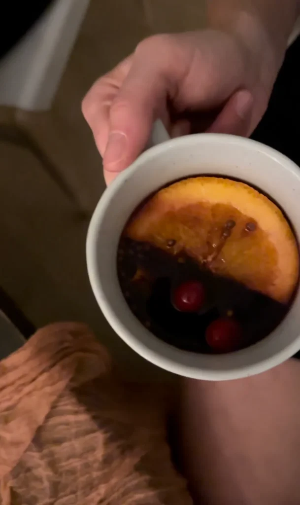 3. Serve with slotted/strainer ladle (to sift out spices), garnish with orange slice and cinnamon stick.