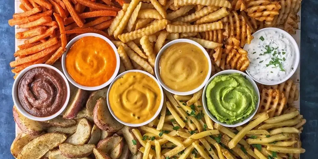 - 3–5 bags of assorted fries (waffle, curly, crinkle, sweet potato, steak cut, tots, onion rings, etc.)