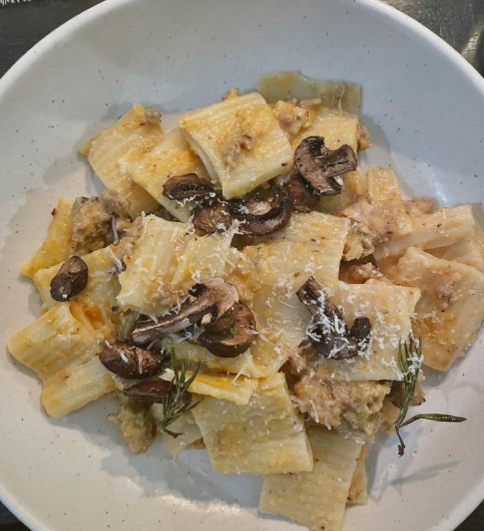– 4 oz pasta of choice (I love a fun noodle here like gemelli or fusilli)