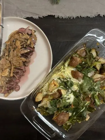 super simple side dish that combines your starch and your veggie – so you don’t have to make two dishes. This also uses minimal dishes! I served this with my steak au poirve which is perfect for date night or entertaining.