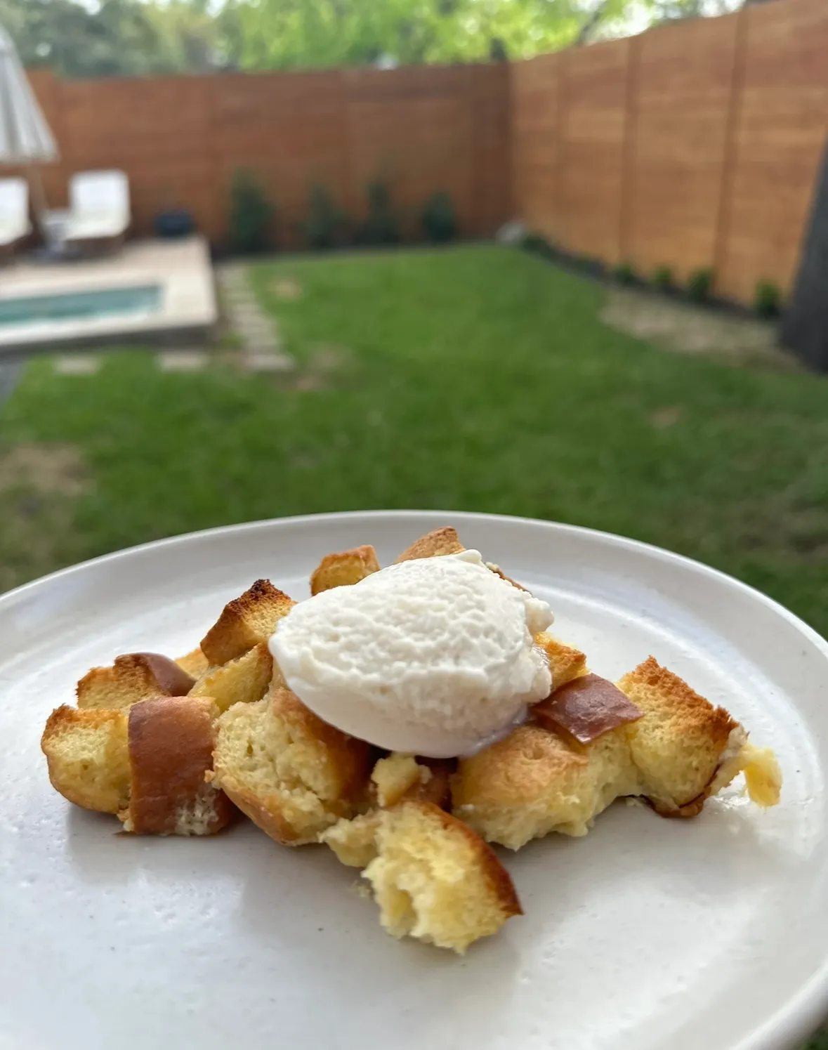 3. Remove milk mixture from heat and whisk in egg. Pour mixture over bread.