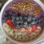 2. Top with blueberries and optional toppings like hemp seeds, coconut flakes and/or more granola.