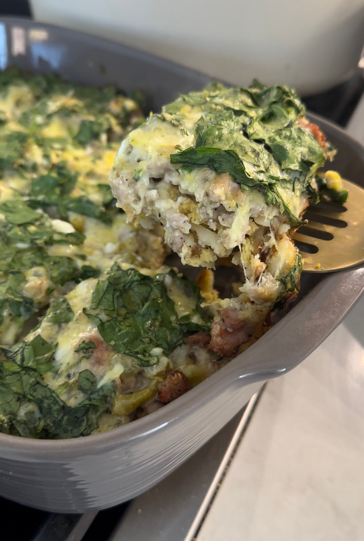 This egg bake is not just a lifesaver for busy mornings but also a delicious way to stay on track with your nutrition. With 34g of protein per slice, you’ll stay full and fueled for hours. Prep a batch over the weekend, and you’ll be set for the week (or longer if you freeze!).