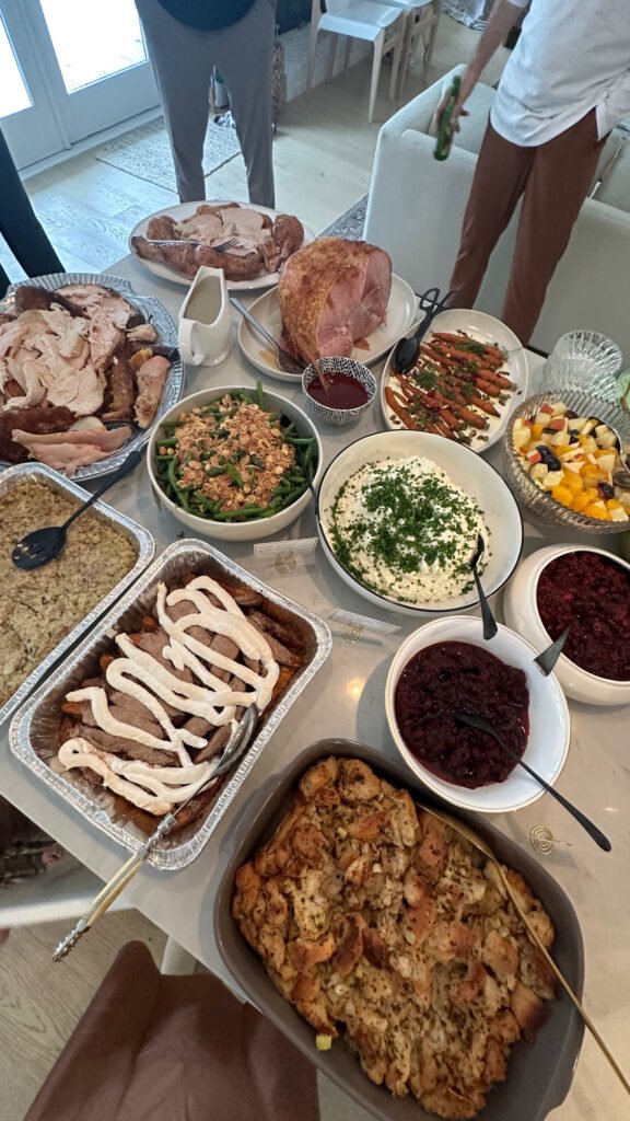 One of the easiest ways to reduce stress during Thanksgiving is by utilizing catering or premade items from the grocery store. There’s no need to cook everything from scratch, especially with the high-quality, pre-prepared dishes available these days. Whether it’s a fully cooked turkey or side dishes like stuffing and mashed potatoes, opting for these can save you valuable time. You can always add your own flair by garnishing or mixing in a homemade touch, but don’t shy away from help where it’s available. I used contigo catering here in Austin!