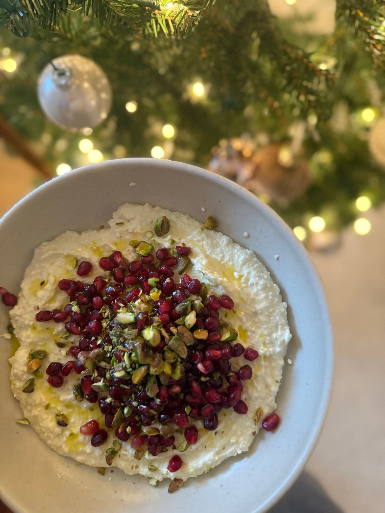 This Whipped Feta with Pomegranate, and Pistachios is a festive and flavorful appetizer that’s perfect for the holidays. The creamy base balances tangy feta with rich Greek yogurt, while the toppings of jewel-like pomegranate seeds and crunchy pistachios make it a true crowd-pleaser.