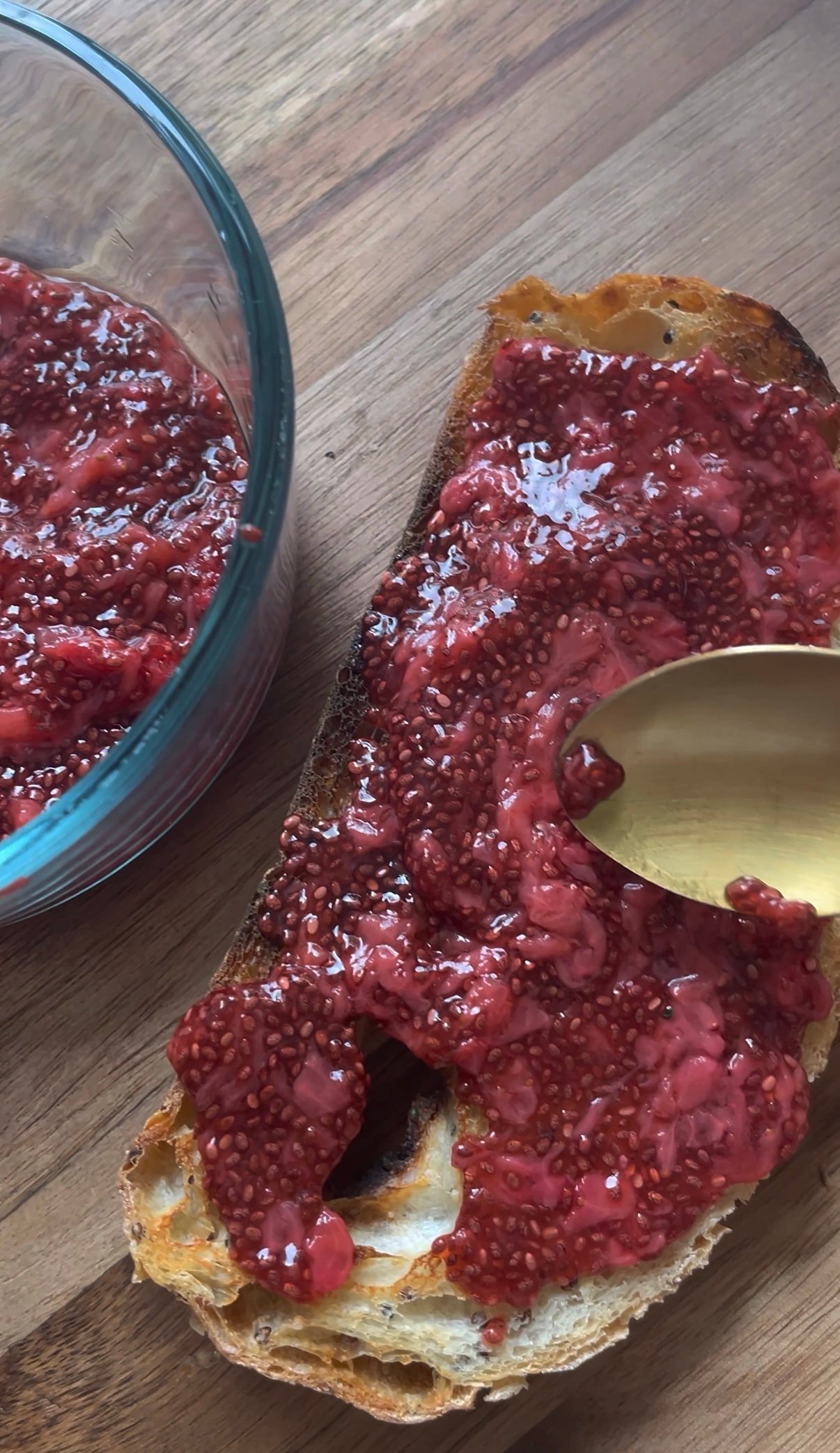 4. Chill & Set: Transfer the jam to an airtight container and pop it in the fridge for 30 minutes. The chia seeds will work their magic and thicken it into the perfect spreadable consistency.