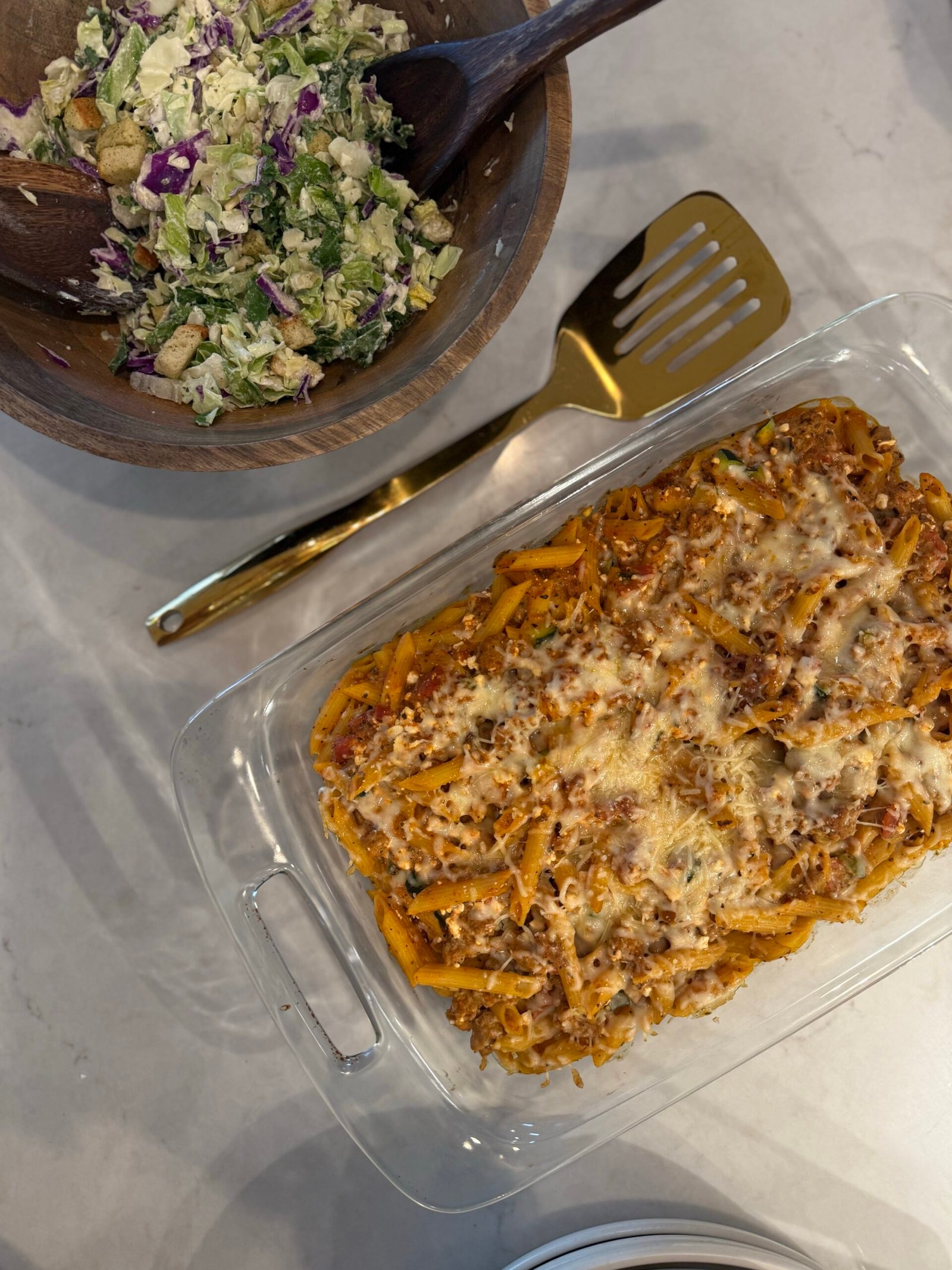 Once done, remove from the oven and let it cool for a few minutes before serving. Enjoy this high-protein, veggie-packed baked ziti as a wholesome and filling meal!