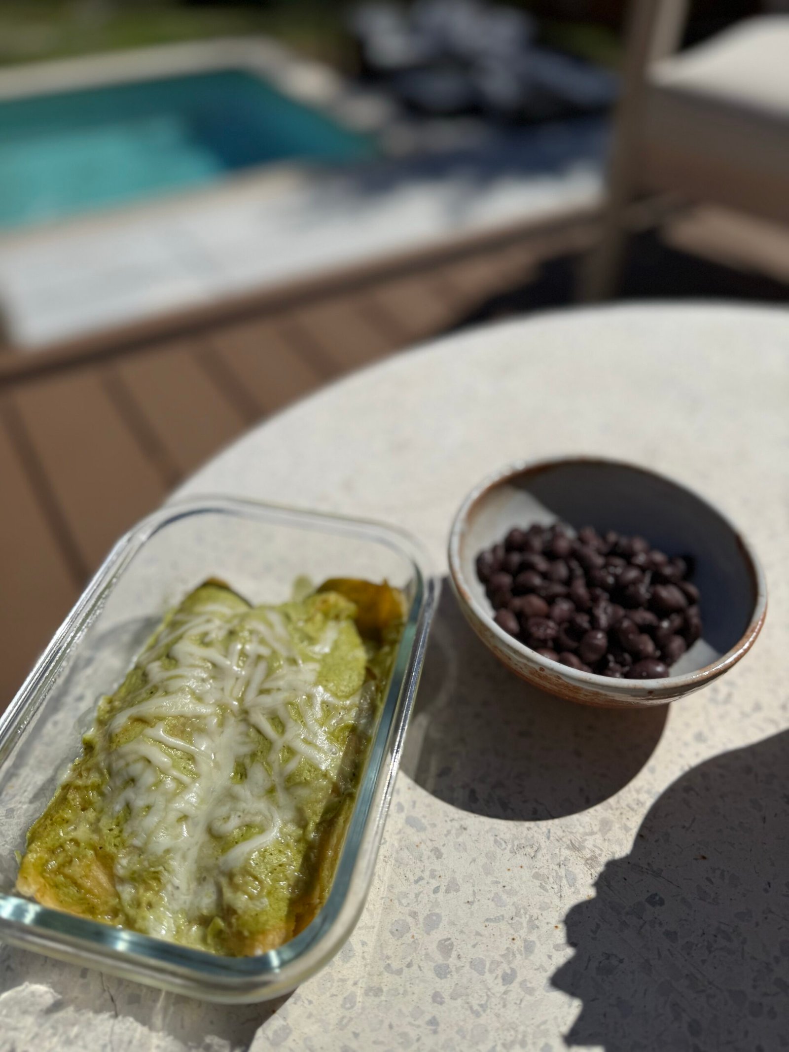 - When ready to eat: Microwave enchiladas for 2 minutes and black beans for 30-45 seconds.