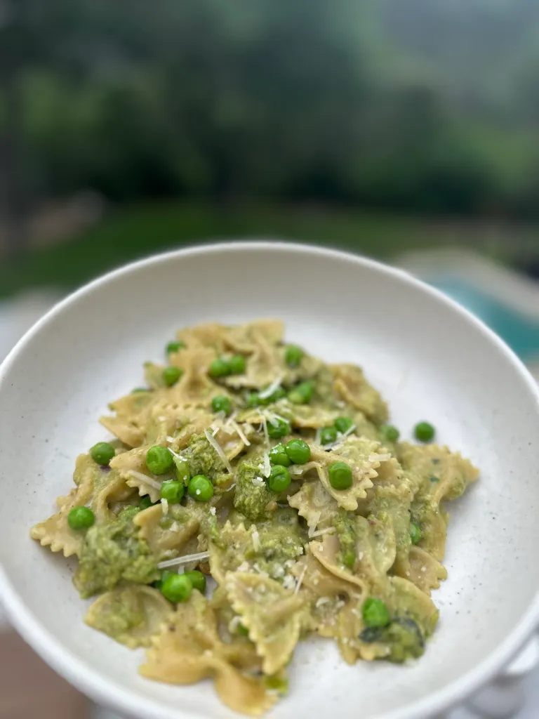 This one is perfect for a lighter dinner or a quick lunch. It’s packed with plant protein from peas and gets its creaminess from blended pesto (no heavy cream here).