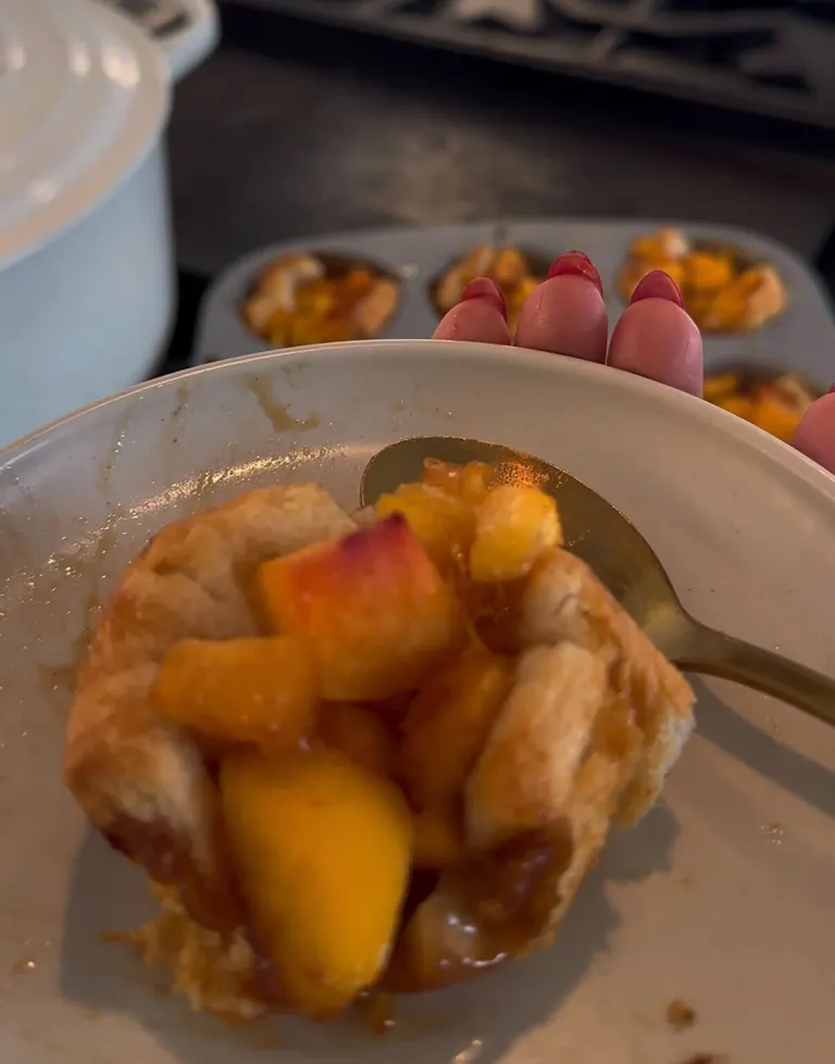 - Instructions: Combine peach filling. Mix crisp topping. Layer into ramekins and bake at 350°F for 20–25 mins.