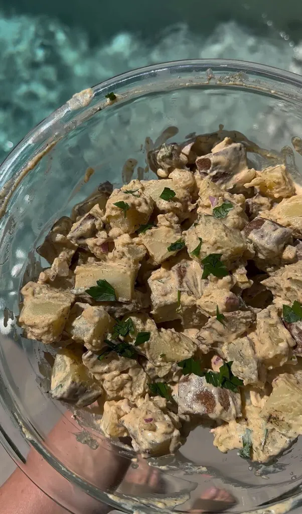 - Instructions: Boil potatoes (bone broth optional). Mix sauce separately, then fold in strained potatoes. Chill 30+ mins.