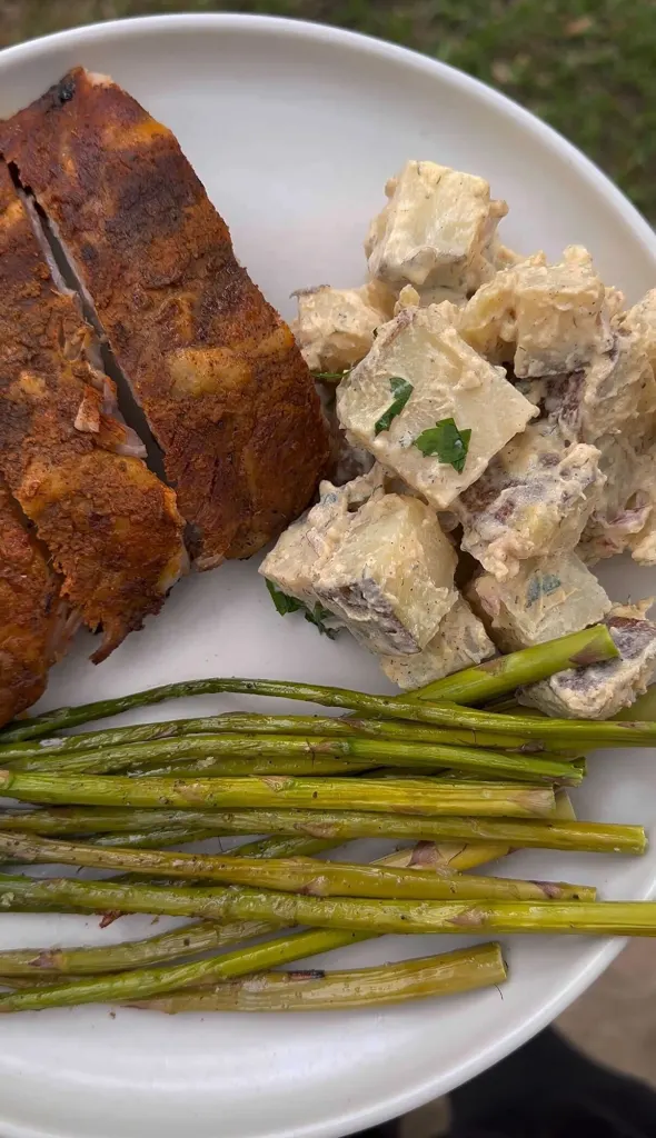 - Ingredients: 4–6 red & yellow potatoes (cubed), 1/2 cup Greek yogurt, 2 tbsp mayo, 2 tbsp Dijon, 2 tbsp yellow mustard, 1 tsp honey, 1 tbsp vinegar, 1 tsp each salt, pepper, garlic powder, onion powder, 1/2 tsp paprika, 1/4 tsp cayenne, 1–2 tsp dried dill or oregano, 2 tbsp fresh dill
