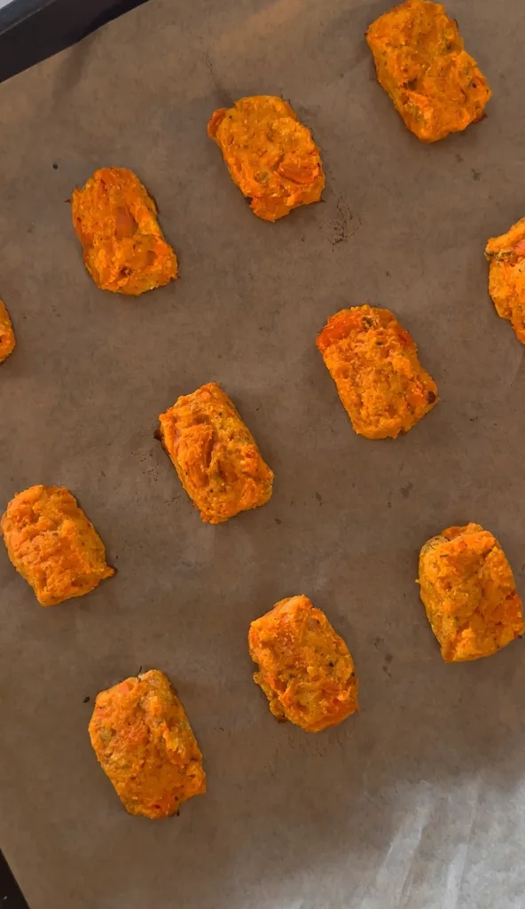 - Ingredients: 1 bag Trader Joe’s sweet potato tots, 1 tbsp avocado oil