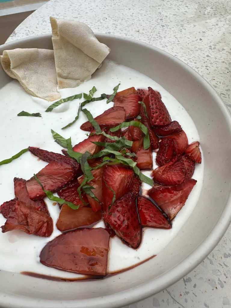 - Instructions: Roast halved strawberries at 400°F with balsamic for 15–20 minutes. Blend feta and yogurt until smooth. Spoon strawberries on top and serve.