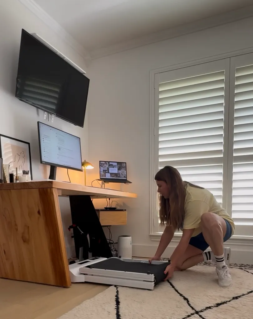 I use it while answering emails, taking calls, editing content… even while watching Netflix at night sometimes if I’m being honest. It’s such a game changer for busy days when I don’t have time to get a full workout in but still want to move my body a bit.