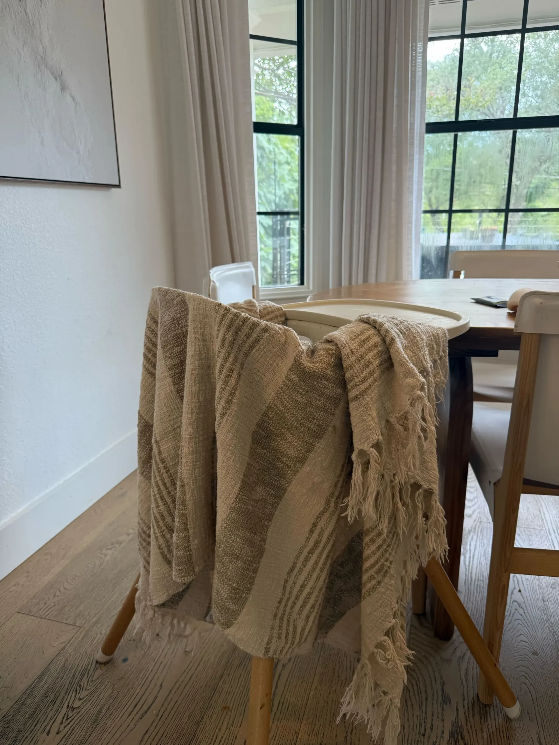 Line your high chair seat with a cute, washable muslin blanket. At the end of the day, toss it in the laundry instead of scrubbing straps and crevices.