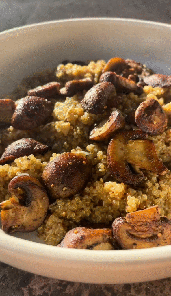 - Sauté mushrooms, onion, garlic in olive oil until fragrant.