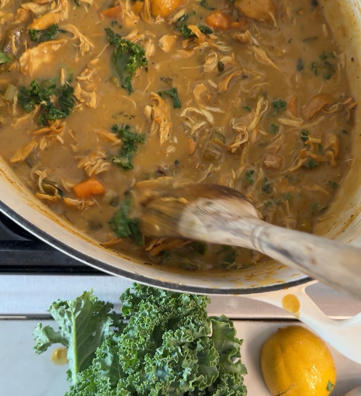 This Healing Chicken Soup is packed with anti-inflammatory ingredients like fresh ginger, turmeric, bone broth, sweet potatoes, and kale. It’s comforting but nutrient-dense. Creamy from coconut milk without being heavy. And it reheats beautifully for leftovers (which honestly makes it even better).