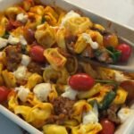 This baked spring orzo is the weeknight dinner you’ve been looking for. One pan, minimal prep, and it’s packed with protein. Think creamy lemon orzo baked with zucchini, cherry tomatoes, green peas, garlic, and a big hunk of sheep’s milk feta nestled right in the center. It’s giving spring vibes and it could not be easier.