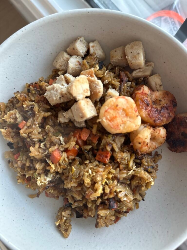 High Protein Bone Broth Fried Rice See how I amped up the protein and veggies in this! Used my favorite cast iron wok. Ingredients for 2: - 1/2 cup organic jasmine rice - 1...