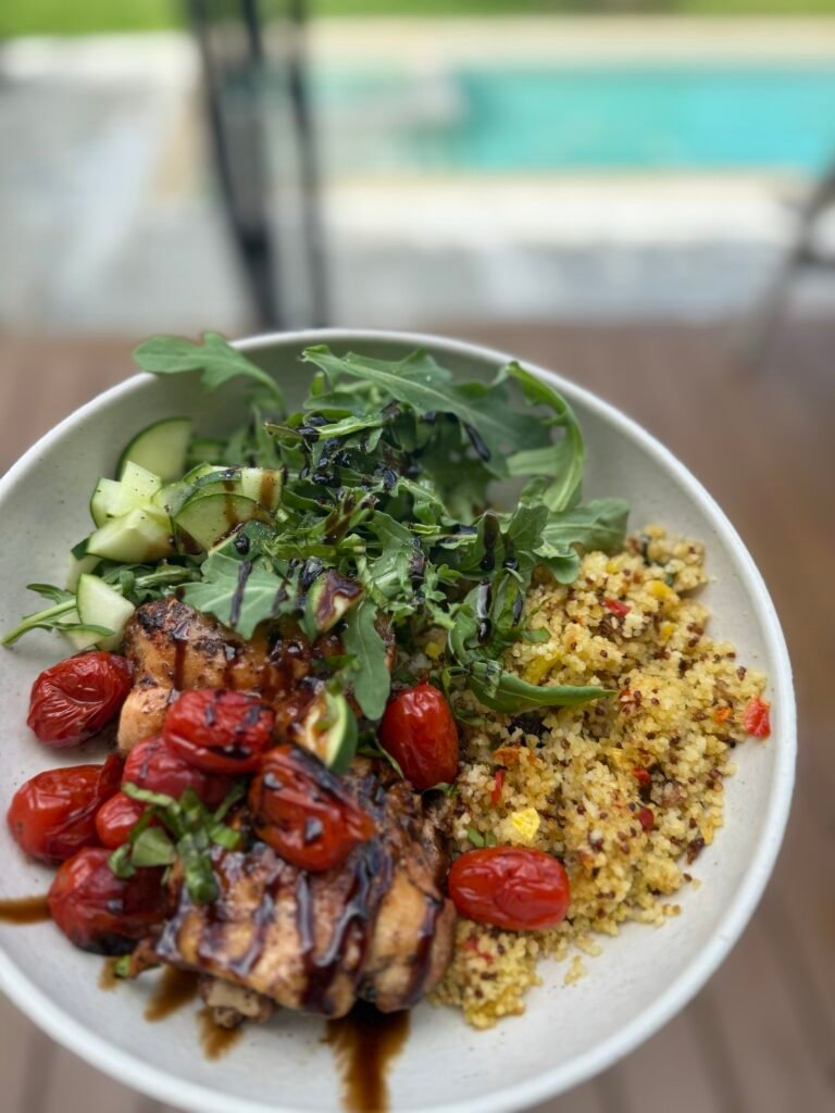 This is one of those dinners that looks like you tried but secretly came together in under 20 minutes. We’re talking juicy balsamic-glazed chicken th...
