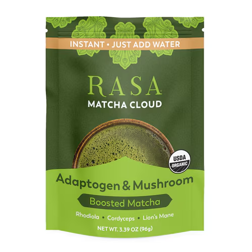 Rasa Matcha Cloud – A creamy, adaptogenic matcha blend with herbs and botanicals that deliver calm, focused energy and a naturally smooth flavor.